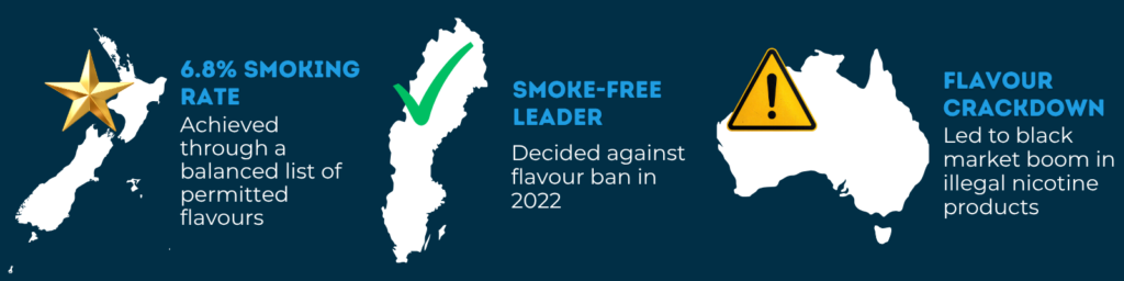 - Sweden, who have led the way in relation to achieving a ‘Smoke-Free’ nation, decided against a flavour ban in 2022.